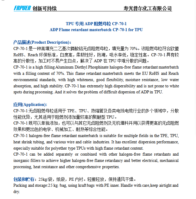 ADP Flame retardant masterbatch CP-70-1 for TPU