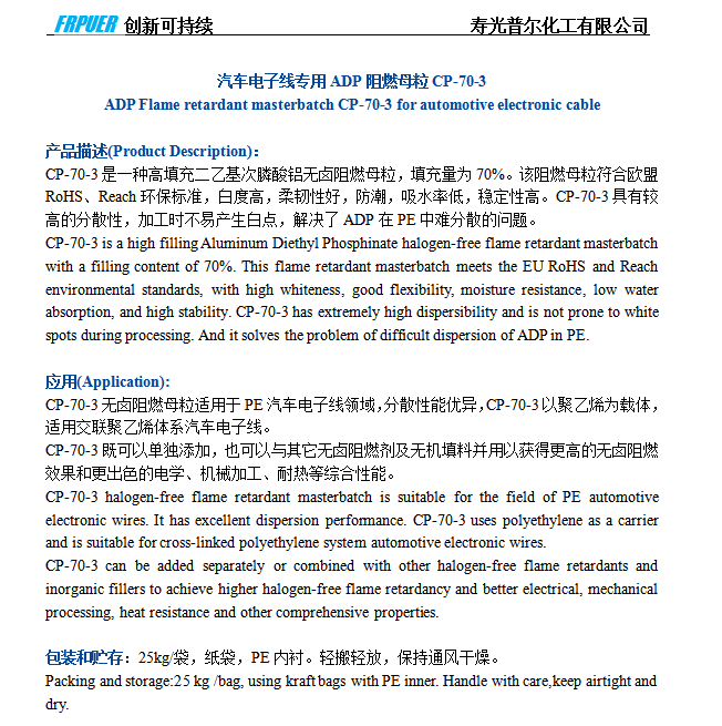 ADP Flame retardant masterbatch CP-70-3 for automotive electronic cable