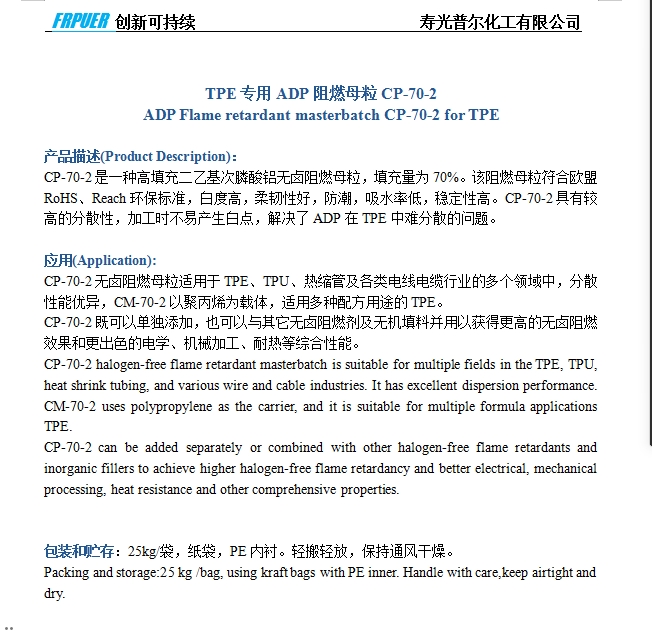 ADP Flame retardant masterbatch CP-70-2 for TPE